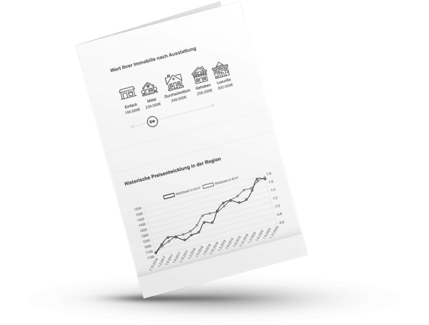 Mit unserer Online-Wertermittlung können Sie als Eigentümer sich völlig unverbindlich, schnell und kostenlos eine erste preisliche Vorstellung von Ihrem Immobilienangebot verschaffen. Mit nur ein paar Klicks bekommen Sie einen aktuellen Startwert, der Ihnen als Basis für Ihren Immobilienverkauf dienen kann. Sie sparen sich einen Maklerbesuch und Telefonate. Geben Sie einfach die Eckdaten Ihres Objektes ein und schon erhalten Sie eine Wohnmarktanalyse, mit der Sie dann weiter vorgehen können.
